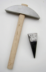 Törő kalapács és hozzá tartozó ék. Elsősorban kőhöz, és smaltihoz használják. Használatkor az ék egy farönkbe van ütve, erre teszik az anyagot, és ráütnek... Természetesen több méretben (súlyban) vásárolhatók a kalapácsok, az alapanyag függvényében változhat. általában 250-300 grammos megfelelő.